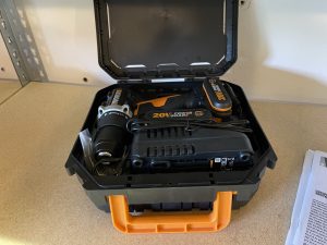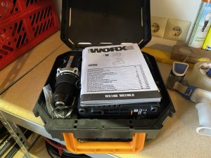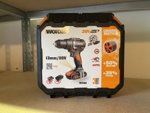 Der WORX WX102 wird in einem stabilen Kunststoff-Transportkoffer geliefert, der sowohl Platz für den Bohrschrauber als auch für das mitgelieferte Ladegerät bietet. Während im Test eine Version mit Akku und Ladegerät verwendet wurde, ist hier ein Modell ohne Akku und Ladegerät verlinkt. Der Koffer überzeugt durch seine solide Verarbeitung und zeigt keine Materialfehler, kann sich jedoch im Vergleich zu anderen Modellen nicht bemerkenswert abheben. Die Material- und Verarbeitungsqualität des Akku-Bohrschraubers selbst hinterlässt hingegen einen positiven Eindruck.