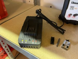 Die Sorge vor einem leeren Akku muss bei Nutzern des TP-CD 18/50 nicht groß sein. Zum Lieferumfang gehören zwei Akkus aus Einhells Power-X-Change-Familie, die auch für andere kompatible Geräte verwendet werden können. Im Test wurde bereits nach 42 Minuten Ladezeit eine volle Akkuladung erreicht.