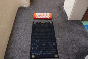In einem weiteren Schritt wurde die Matte barfuß betreten, um die Fußreflexzonen zu massieren. Auch hier war keine Eingewöhnungszeit nötig. Die Füße wurden warm und die Massage war sehr angenehm.