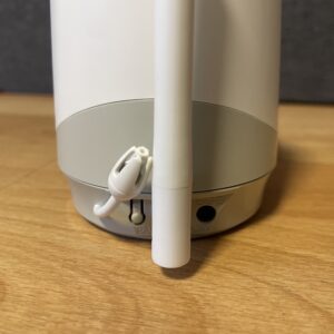 Zusätzlich ist das Gerät mit einem Temperatur- und Luftfeuchtigkeitssensor ausgestattet, dessen Werte in der App angezeigt werden. Eine Alarmfunktion ist ebenfalls vorhanden. Es besteht die Möglichkeit, eine microSD-Karte mit einer Speicherkapazität von bis zu 128 Gigabyte zu nutzen, die jedoch nicht im Lieferumfang enthalten ist. Der Speicherkarten-Slot, der gut versteckt an der Unterseite des Kamerakopfes platziert ist, lässt sich nur erreichen, wenn der Kamerakopf nach oben gedreht wird. Der Hersteller garantiert mindestens 2 Jahre Software- und Sicherheitsupdates nach dem Kauf.