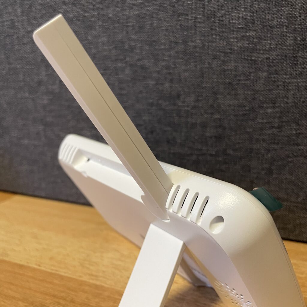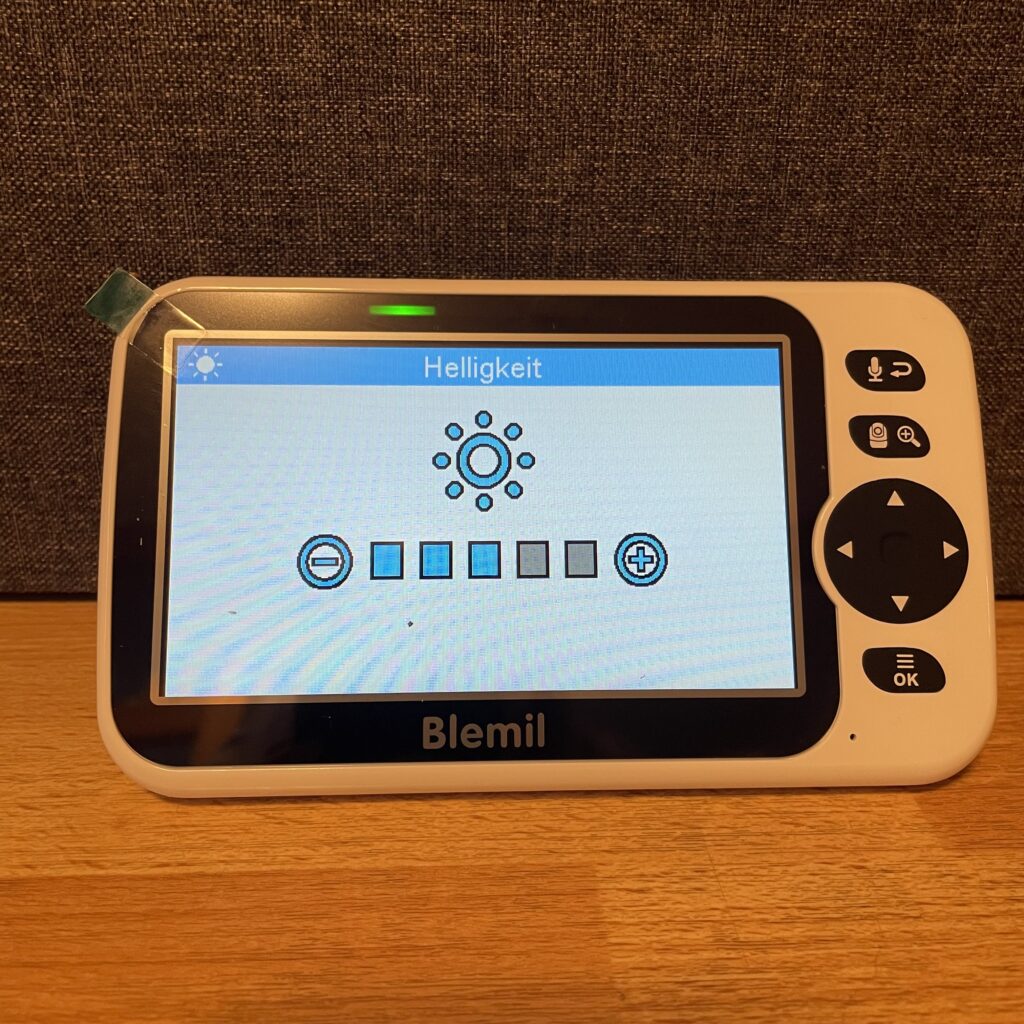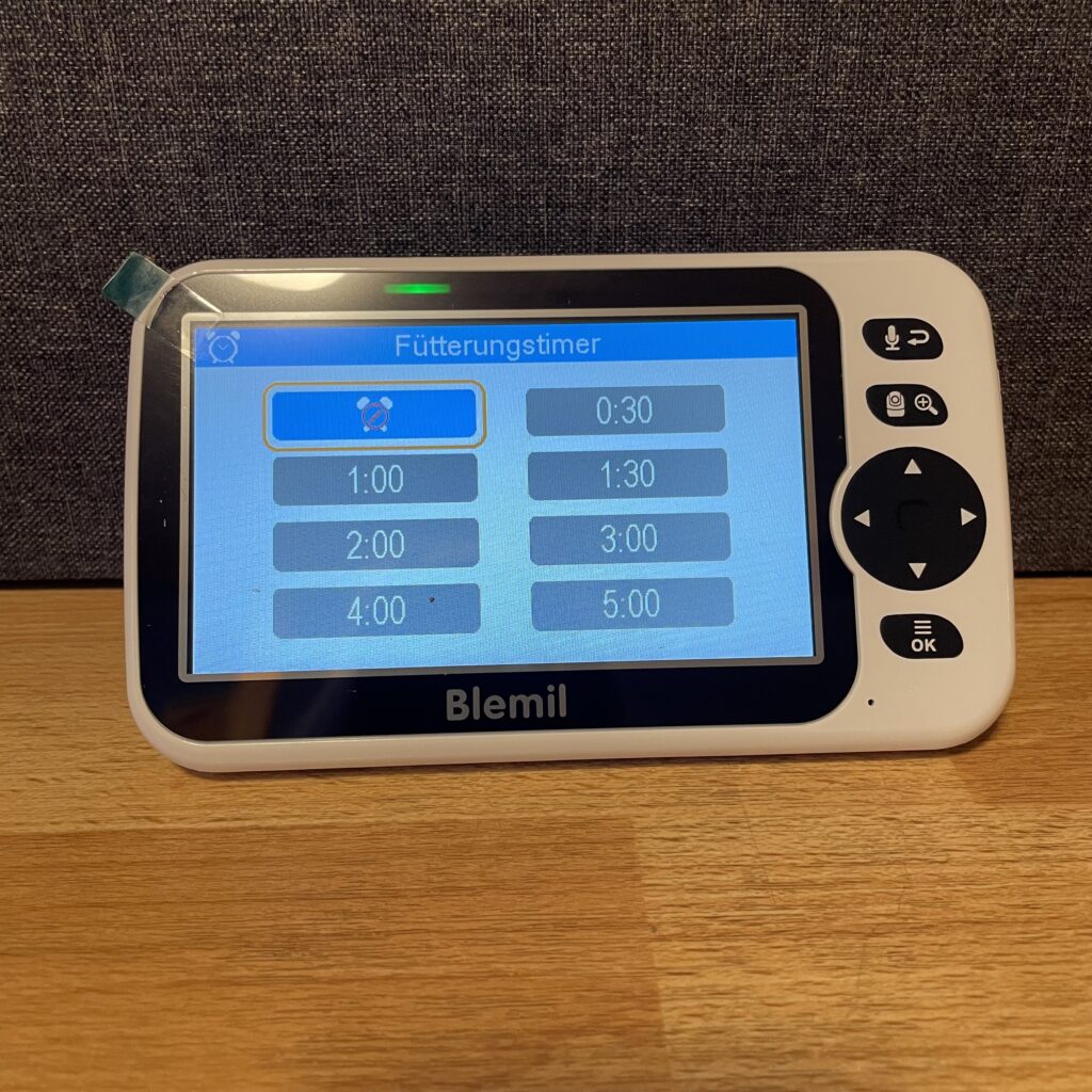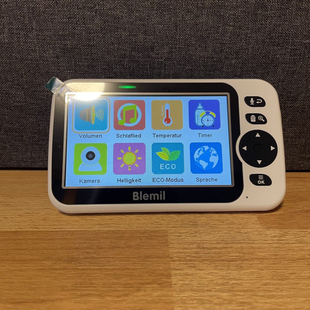 Die Energieverwaltung übernimmt der VOX-Modus. Bei Ruhe schaltet sich das Display automatisch ab und aktiviert sich erst bei Geräuschen, was die Laufzeit des Akkus spürbar verlängert. Im Test hielt die Elterneinheit damit rund 13 Stunden durch. Die Kamera selbst läuft ausschließlich im Netzbetrieb.
