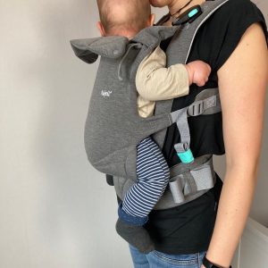 - Ergonomie: Eine hochwertige Babytrage muss eine anatomisch korrekte Sitzposition für das Kind ermöglichen, um Schäden am Bewegungsapparat zu vermeiden. Zudem sollte die Trage ergonomisch sein und das Gewicht des Kindes gut verteilen. Es gibt Babytragen, die nicht für sehr große oder kleine, zierliche Personen geeignet sind. Das individuelle Tragegefühl ist ebenfalls entscheidend. Die Eltern sollten sich wohlfühlen, sich frei bewegen können und auch bei längerer Nutzungsdauer keine Rückenschmerzen verspüren.