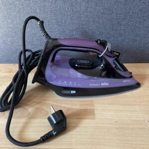 Das Braun TexStyle 9 SI9661VI Dampfbügeleisen wurde Testsieger dank des besten Gesamtpakets. Mit einer hohen Leistung, einem intelligenten Temperaturmanagement und der besonders gleitfähigen EloxalPlus-Sohle überzeugte das Gerät auf ganzer Linie. Optisch präsentiert sich das Modell in der Farbvariante Violet, ergänzt durch ein modernes, ergonomisches Design, das angenehm in der Hand liegt.