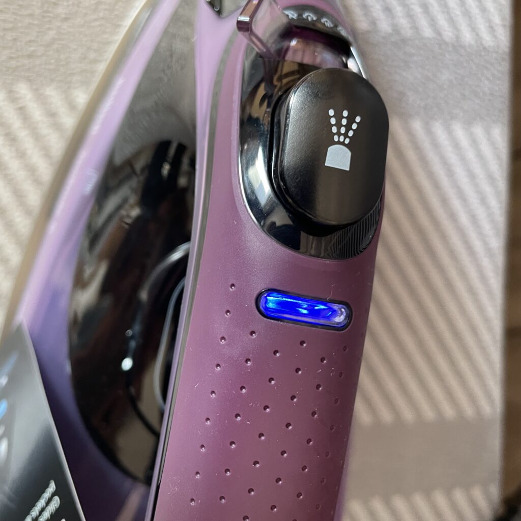 Die Verarbeitung überzeugt durch präzise Übergänge zwischen Griff, Tank und Sohle. Besonders auffällig ist die EloxalPlus-Bügelsohle mit der sogenannten FreeGlide-3D-Technik, die leicht nach oben gewölbt ist und dadurch problemlos vorwärts oder rückwärts über Stoffe gleitet. Die Bedienung gestaltet sich intuitiv. Statt klassischer Temperaturstufen stehen die iCare-Smart-Funktion sowie ein Turbo-Modus zur Verfügung. Die iCare-Technik regelt die Temperatur automatisch und schützt empfindliche Textilien vor Hitzeschäden. Für besonders hartnäckige Stoffe lässt sich mit einem Tastendruck der Turbo-Modus aktivieren.