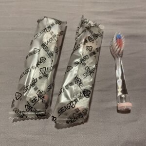 Für die Oclean X Pro Digital S stehen zwei unterschiedliche Bürstenköpfe zur Auswahl. Der größere Kopf eignet sich für das normale Putzen und verfügt über eine Zungenreiniger-Oberfläche. Der kleinere Kopf hat laut Hersteller um 20 Prozent weichere Borsten und ist mit einer silikonbeschichteten Abdeckung sowie fluorid-infundierten Borsten ausgestattet. Dieser Kopf richtet sich besonders an Träger von Zahnspangen.