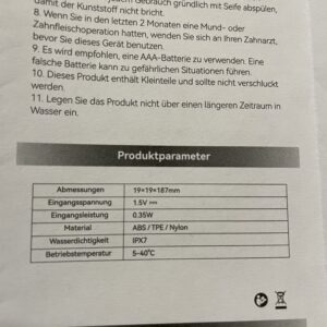 Bei der Auswahl der elektrischen Zahnbürste sollte auch auf Wasserdichtigkeit geachtet werden, um Stromschläge zu vermeiden, insbesondere wenn die Zahnbürste in feuchten Umgebungen eingesetzt wird. Ein Sicherheitsfaktor ist die IP-Schutzart IPX7, die elektrische Zahnbürsten vor Schäden bei vorübergehender Nässe schützt.