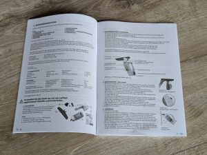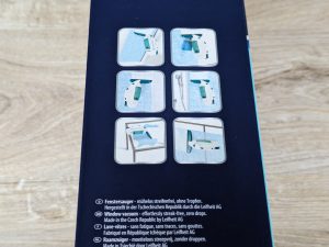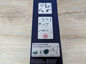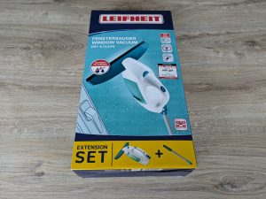 Der Lieferumfang des Leifheit Dry & Clean ist variabel. Der Hersteller bietet das Gerät sowohl einzeln als auch kombiniert mit Sprühwischer oder mit Sprühwischer und Teleskopstange an. Im umfassendsten Set wird eine standardmäßig enthaltene 28-Zentimeter-Saugdüse durch eine 17-Zentimeter-Düse ergänzt, ideal für kleine Fenster. Das Testmodell enthielt lediglich den Teleskopstiel, der Sprühwischer und die schmale Absaugdüse konnten nicht getestet werden. Da diese optional sind, erfolgt kein Abzug beim Lieferumfang.
