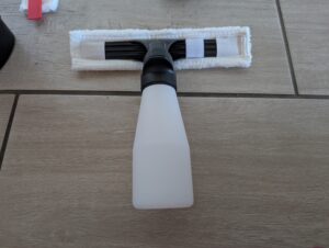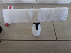 Im Lieferumfang des Fensterreinigers sind eine Sprühflasche sowie ein Wischbezug für die Fensterreinigung enthalten. Zwei Mikrofaserbezüge – einer für Innen- und einer für Außenanwendungen – sorgen für Flexibilität. Besonders hervorzuheben ist der beiliegende Schmutzkratzer, der groben Schmutz effektiv löst. Zudem gehören 20 Milliliter Reinigungsmittelkonzentrat dazu.