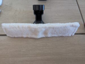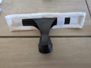 Der Bosch GlassVAC wird mit zwei Saugdüsen mit Breiten von 26,6 und 13,3 Zentimetern geliefert. Die schmale Düse erleichtert das Putzen kleinerer Scheiben. Allerdings ist die breite Düse im Vergleich zu anderen Modellen wie von Kärcher, Einhell oder Vileda weniger effizient, was die Reinigung betrifft.