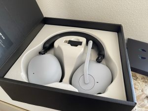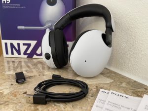 Die Ausstattung des Headsets ist minimalistischer Natur. Eine Aufbewahrungsmöglichkeit oder Ladestation ist nicht vorhanden. In Anbetracht des hohen Preises waren die Erwartungen hier etwas höher. Ein USB-C-Ladekabel liegt bei, jedoch kein Ladeadapter. Positiv fällt auf, dass Sony zahlreiche Einstellungsmöglichkeiten an den Ohrhörern integriert hat. Die Lautstärkeregelung erfolgt mithilfe eines komfortablen Drehreglers, ebenso befindet sich dort die ANC-Taste. Ein USB-Adapter für die 2,4-Gigahertz-Funkverbindung ist ebenfalls im Karton enthalten. Das Gaming-Headset INZONE H9 von Sony ist für die Nutzung mit der Playstation 5 und dem PC optimiert.