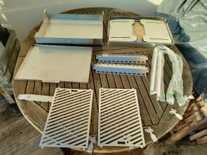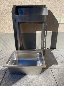- Zwei klappbare Ablagen mit Schneidebrett und GN-Container