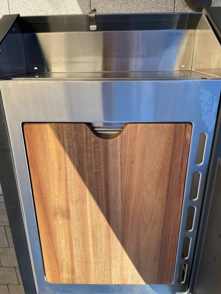 - Akazienholz-Schneidebrett im Seitentisch integriert