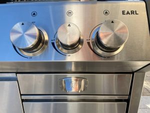 Die Bedienelemente des Dualchef sind großzügig dimensioniert und angenehm zu greifen. Ein Highlight sind die beleuchteten Drehregler mit integriertem Lichtsensor. Sie passen ihre Helligkeit automatisch an das Umgebungslicht an und zeigen deutlich an, welcher Brenner aktiv ist. An Sicherheit wurde ebenfalls gedacht. Soft-Close-Türen verhindern ein Zuschlagen, der Magnetverschluss sorgt für sauberes Schließen. Die stabile Bauweise vermittelt einen vertrauenerweckenden Eindruck, und der Grill steht dank seines Gewichts absolut sicher.