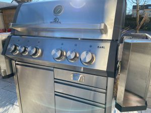 Die Montage ist etwas anspruchsvoller als bei kleineren Modellen, gelingt aber dank vormontierter Module deutlich einfacher als erwartet. Die Anleitung ist bildbasiert und erfordert etwas Aufmerksamkeit, jedoch passt alles exakt zusammen. Nach Abschluss der Montage präsentierte sich der Grill als echtes Schwergewicht mit makelloser Verarbeitung, massiven Drehreglern und hochwertiger Haptik. Die Kombination aus schwarzem Metall und Edelstahl-Elementen verleiht dem Burnhard Earl eine edle, professionelle Anmutung. Alle Bauteile wirken robust, die Spaltmaße sind gleichmäßig, und die Konstruktion steht absolut stabil.