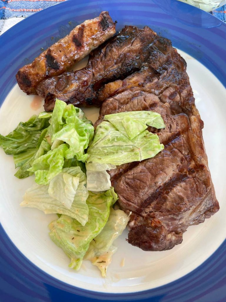 Die Hitzeverteilung erwies sich als gleichmäßig, die gusseisernen Roste lieferten ein sauberes Branding. Besonders positiv fiel die Flexibilität durch den Zone Divider auf: Während ein Steak bei niedriger Temperatur ruhen konnte, wurde auf der anderen Seite Gemüse bei intensiver Hitze gegrillt. Das indirekte Garen mit geschlossenem Deckel funktionierte ebenfalls einwandfrei.