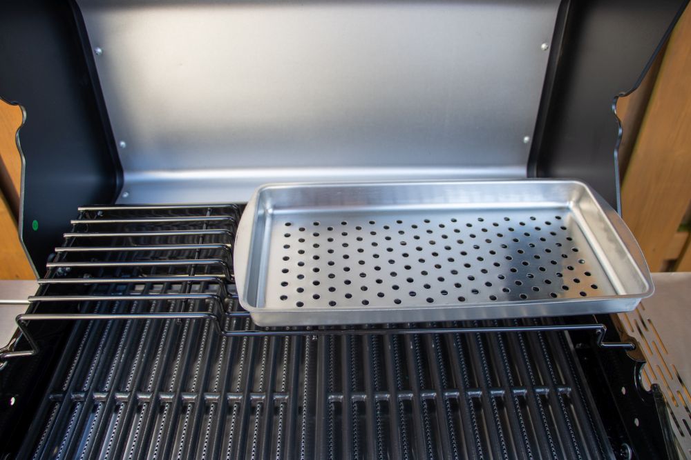 Ein integriertes Deckelthermometer erleichtert die Temperaturkontrolle während des Grillens. Besonders hervorzuheben ist die im Lieferumfang enthaltene Smokebox aus Edelstahl. Diese lässt sich mit Räucherspänen befüllen und direkt auf die Flavor Bars setzen, wodurch Fleisch und Fisch ein intensives Raucharoma erhalten. Die Box ist robust, langlebig und sorgt für ein zusätzliches Geschmackserlebnis beim Grillen.