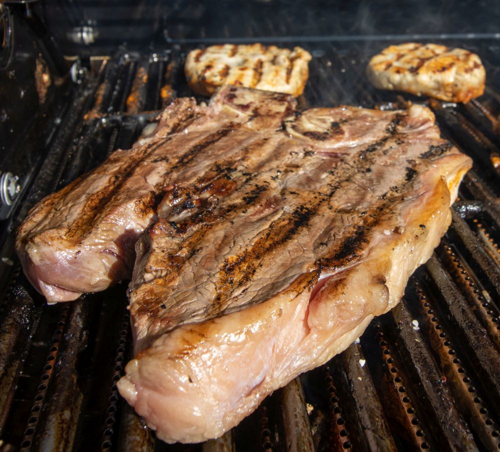 Die Piezozündung startet zuverlässig; die großen Regler sind logisch angeordnet und feinfühlig dosierbar. Mit geschlossenem Deckel wurden schnell 350 Grad Celsius erreicht, das Deckelthermometer ist gut ablesbar. Der Infrarotbrenner liefert bis zu 900 Grad Celsius. Die Steaks wurden außen kross ohne zu verbrennen, innen blieben sie saftig. Der Backburner wurde im Test probeweise ohne Spieß gezündet. Die Hitzeverteilung entlang der Keule ist praxistauglich, das Potenzial für Drehspieß-Gerichte ist klar erkennbar.