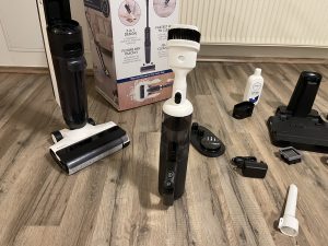 Das Wischmodul erwies sich jedoch als Enttäuschung. Es besteht aus durchsichtigem Kunststoff und ähnelt einer einfachen Verpackung, was auf eine kurze Haltbarkeit hindeutet. Auch das Nutzen von Einwegwischtüchern erscheint nicht sinnvoll, was Folgekosten mit sich bringt. Das zweiteilige Saugrohr zusammen mit der Reinigungsdüse für Hartböden überzeugte hingegen, da sie den H30 fast zu einem vollwertigen Bodenstaubsauger für schnelle Reinigungen aufwerten.