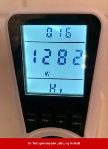 Zusätzlich wurde die Leistung in Watt und die Zubereitungszeit inklusive Aufheizzeit gemessen. Das Messgerät wies eine Leistung von 1.318 Watt aus und eine Zubereitungszeit von 77 Sekunden für eine Tasse. Philips gibt eine Leistung von 1.450 Watt und eine Zubereitungszeit von 44 Sekunden an. Diese Werte weichen somit von den Messungen ab.