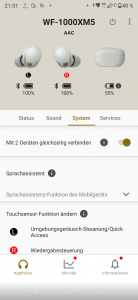 Bezüglich der App hat Sony umfassende Arbeit geleistet. Jeder Ohrhörer ist mit einem Touchsensor ausgestattet, der individuell konfiguriert werden kann. Tippen, zweimal tippen, dreimal tippen oder gedrückt halten sind Bedienmöglichkeiten, die verschiedenen Funktionen wie Geräuschunterdrückung und Titelsprung zugeordnet werden können. Zudem lässt sich die Seitenzuordnung von links nach rechts und umgekehrt leicht wechseln. Ein manueller Equalizer ermöglicht Klanganpassungen und ein Assistent hilft dabei, die optimale Klangbalance zu erstellen.