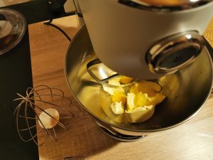 Zusätzlich wurden zwei Teigsorten getestet: ein fester Mürbeteig und ein Rührteig. Hierbei kamen die Vorteile der integrierten Wiegefunktion zur Geltung, die lediglich von der Kenwood Titanium Chef Patissier XL und der KitchenAid-Küchenmaschine geboten wird. Jede Zutat konnte bequem ohne vorheriges Wiegen in die Rührschüssel gefüllt werden, indem die Waage jedes Mal auf null gestellt wurde. Nach dem Herunterklappen des Gerätearms wurden die Einstellungen am Display vorgenommen. Das planetarische Rührwerk sorgte dafür, dass nur wenige Teigreste oder Zutaten am Rand kleben blieben. Die Aufsätze erreichen sogar den Schüsselboden, sodass keine unverrührten Reste zurückbleiben. Durch den Spritzschutz trat kein Teig aus, allerdings gelang das Hinzufügen von Eiern und Mehl durch die Öffnung des Spritzschutzes nicht ohne Kleckern.