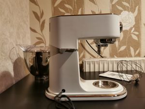 Die Küchenmaschine wurde sowohl für die Zubereitung von Kuchen- als auch Brotteigen verwendet. Dabei wurden ein lockerer Rührteig und zusätzlich ein fester Hefeteig hergestellt. Das Mischen, Verarbeiten und Rühren der Zutaten wurde von der Maschine zuverlässig gemeistert. Beim Mischen und Schlagen spritzte nichts, und der Spritzschutz sorgte dafür, dass keine Sahne auf der Arbeitsplatte landete. Auch die Knetmaschinenprüfung wurde ohne Schwierigkeiten bestanden. Der abnehmbare Spritzschutz bietet eine große Nachfüllöffnung, die das Hinzufügen weiterer Zutaten während der Teigzubereitung erleichtert.