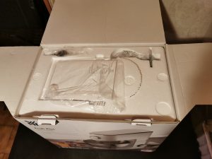 Die Kenwood Titanium Chef Patissier XL Küchenmaschine erweist sich als komplett digital gesteuertes Gerät, das vor allem für Patisserie-Arbeiten entwickelt wurde. Zu den zahlreichen Funktionen zählen Kneten, Rühren, Schlagen sowie Wiegen und Schmelzen. Bei der Ankunft der Küchenmaschine fiel direkt das hohe Gewicht von 8,4 Kilogramm ohne Zubehör auf. Der Schutz der Einzelteile während des Transports wurde durch zwei Styroporpolster und mehrere Kunststoffumhüllungen sowie kleinere Kartons sichergestellt. Die Küchenmaschine präsentiert sich mit einem stabilen Edelstahl-Gehäuse und einer hochwertigen Verarbeitung.