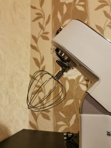 Im Funktionstest wurde zunächst Sahne geschlagen. Während des Einfüllens mit hochgeklapptem Arm zeigte das Display das Gewicht der Sahne an. Ohne Programmwahl wurde entschieden, die Sahne auf Stufe vier für 5 Minuten zu schlagen. Hierbei kam der Ballonschneebesen zum Einsatz. Die Sahne wurde während der gewählten Zeit steif. Bei der höchsten Geschwindigkeitsstufe fünf war die Sahne jedoch innerhalb kurzer Zeit überschlagen und verwandelte sich in Butter. Ein gewisses Fingerspitzengefühl ist bei dieser kraftvollen Maschine erforderlich.
