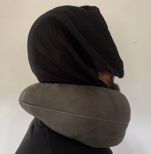 "Nackenkissen mit Kapuze für mehr Privatsphäre"
