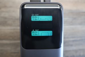 Ein weiterer Pluspunkt der PdBest CA5-6 Powerbank ist die Möglichkeit, mit 22,5 Watt über den USB-C-Anschluss schnellzuladen. Damit kann die Powerbank auf dem Papier mit der Jiga PC5 mithalten, welche im Praxistest jedoch besser abschnitt. Knappe 40 Minuten dauerte es mit der PdBest-Powerbank, das im Test verwendete Smartphone OnePlus 8T auf 60 Prozent Kapazität zu laden, das Jiga-Gerät benötigte nur circa 30 Minuten. Praktisch war, dass die Powerbank in ihrem digitalen LED-Display anhand eines grünen Blitzes anzeigte, wann Schnellladen aktiv ist und wann nicht. Und auch bei den Sicherheitsfeatures gab es nichts zu beanstanden, die Powerbank verfügte über das übliche Paket aus Kurzschlussschutz, Überhitzungsschutz, Überstromschutz und Überspannungsschutz. Zudem waren die Tester in der Lage, gleichzeitig zu laden und zu entladen, was die Funktionalität der „Passthrough-Charging“-Funktion bestätigte.
