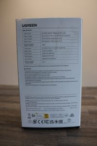 Die Powerbank von Ugreen ist mit insgesamt drei Anschlüssen ausgestattet: zwei USB-C-Ports, von denen einer sowohl für das Laden der Powerbank als auch anderer Geräte verwendet werden kann, sowie einem USB-A-Anschluss. Die Kapazität beläuft sich auf 20.000 Milliamperestunden. Der erste USB-C-Anschluss liefert die oben genannte Leistung von 100 Watt zum Aufladen von Notebooks und ist zudem kompatibel mit den meisten anderen Geräten wie Smartphones, MP3-Playern oder Kopfhörern. Der zweite USB-C-Anschluss bietet eine Leistung von 30 Watt, während der USB-A-Anschluss mit bis zu 22,5 Watt aufwartet.