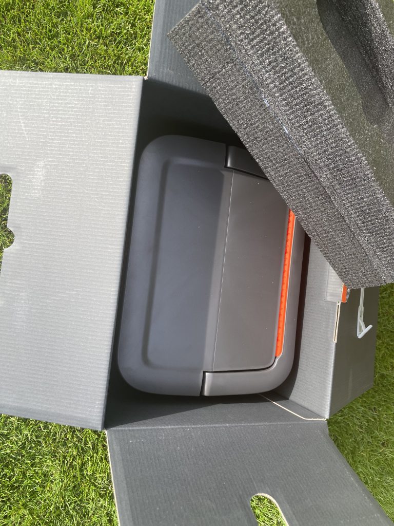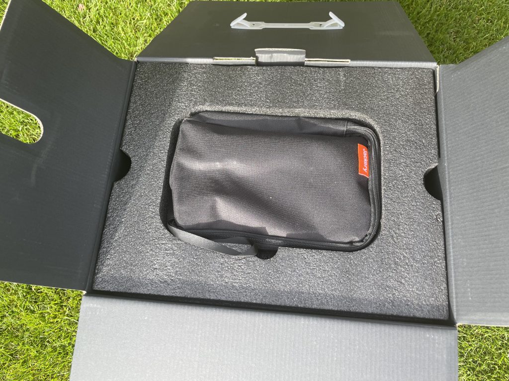 Da die Powerstation allerdings 23,5 Kilogramm wiegt, muss ein Einsatz unterwegs wohl überlegt sein. Hier muss direkt angemerkt werden, dass mit Blick auf die Leistungsfähigkeit sowohl das Gewicht als auch die Abmessungen von 49 x 24 x 30,5 Zentimetern positiv sind, da andere vergleichbare Modelle weitaus schwerer und größer sind. Immerhin liefert das Kraftpaket eine Kapazität von 2.048 Wattstunden. Auch die beiden Handgriffe an den Außenseiten sind praktisch für einen Transport der Powerstation. Das Modell erreichte die Redaktion sehr sicher und gut verpackt.