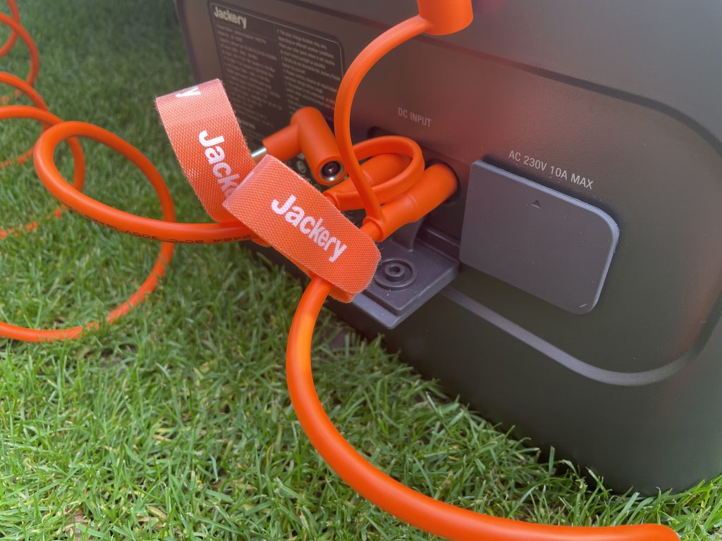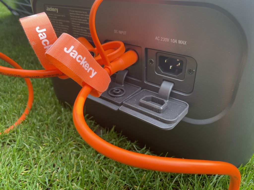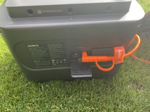 Über eine 230-Volt-Steckdose lässt sich der Akku innerhalb von 2 Stunden vollständig laden – beeindruckend schnell, jedoch mit einem Verbrauch von 2.900 Watt. Dadurch können Kabel und Verlängerungen sehr heiß werden. Besonders in Altbauten mit schwacher Verkabelung besteht die Gefahr von Überlastung. Ein Schalter an der Powerstation ermöglicht es, die Ladeleistung auf die Hälfte zu reduzieren.