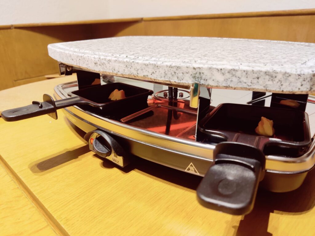 - Platz für Raclette-Pfännchen vorhanden