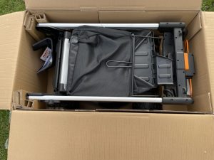 Der Aufbau des Mähers gestaltet sich dank gut bebilderter und klar verständlicher Anleitung zügig. Der höhenverstellbare Holm, bestehend aus zwei Teilen, lässt sich ohne Werkzeug montieren. Der Fangbehälter aus stabilem Kunststoff muss ebenfalls vor der Nutzung zusammengesetzt werden, was sich als zeitaufwendig herausstellte. Die Akkus werden im Vorderbereich des Mähers hinter einer durchsichtigen Kunststoffklappe eingesetzt. Das Aufladen benötigt den Testerfahrungen zufolge etwa 70 Minuten.