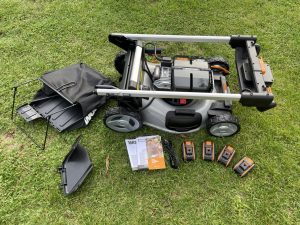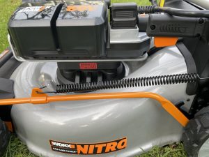 1. Testsieger: Worx WG761E Nitro Akku-Rasenmäher mit großer Schnittbreite und leistungsstarkem Akkupack