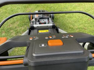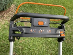 Die Schalter zur Aktivierung des Rasenmähers befinden sich beidseitig am Griff. Der Griff ist mit Schaumstoff ummantelt, um einen sicheren Halt zu bieten. Der Aufbau des Mähers ist selbsterklärend, und eine bebilderte sowie leicht verständliche Anleitung ist beiliegend. Der Radantrieb kann unabhängig vom Mähbetrieb genutzt werden. Hier ist ein Vorstellungsvideo des Herstellers zu finden: