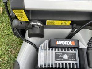 Mit einem Gewicht von 35 Kilogramm zählt der Worx WG761E Nitro zu den schwersten Akku-Rasenmähern im Test. Dies ist nicht nur der Größe des Geräts geschuldet, sondern auch den vier benötigten Akkus und dem Akkupack. Dennoch ist das Gewicht während des Betriebs kaum bemerkbar, da der Rasenmäher über einen regulierbaren Radantrieb verfügt, der die Handhabung erleichtert. Die vorderen und hinteren Handgriffe tragen ebenfalls zur einfachen Bedienung bei. Die Akkus sind unter verschiedenen Worx-Geräten austauschbar, sofern die Spannung übereinstimmt. Besitzer anderer Worx-Geräte können somit die Akkus als Backup nutzen. Ein weiteres Plus ist das integrierte Arbeitslicht, das den Mähbereich bei schlechten Lichtverhältnissen ausleuchtet.