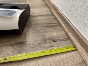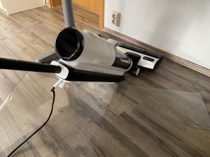Zunächst wurde der Boden im Smart-Modus gereinigt. Schmutzpartikel und Flecken konnten zuverlässig entfernt werden. Der Sauger verwendet elektrolysiertes Wasser, das eine antibakterielle Wirkung hat und somit Bakterien abtötet. Besonders positiv fiel die gründliche Kantenreinigung auf. Der Saugwischer von UWANT ermöglicht eine sehr kantennahe Reinigung, wobei nur wenige Millimeter ungewischt blieben.