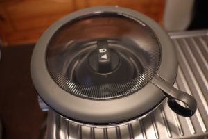 Nach dem ersten Einschalten und dem Befüllen des Mahlwerks sowie des Wasserbehälters kann die Zubereitung beginnen. Das automatisch startende Einführungsprogramm kalibriert somit nebenbei das Tampersystem, um sich optimal auf die verwendeten Kaffeebohnen einzustellen. Sollte zu wenig Kaffee im Siebträger landen, wird zusätzliches Pulver gemahlen. Bei zu viel Kaffeepulver kann der Nutzer mit dem mitgelieferten Messer, genannt „the Razor Dosierhilfe“, das überschüssige Pulver vor der Extraktion entfernen. Auf diese Weise landet nach der Testerfahrung genau die erforderliche Menge Pulver im Sieb für eine optimale Extraktion. Diese Kalibrierung ist erneut erforderlich, wenn der Mahlgrad geändert oder die Bohnensorte gewechselt wird, was die Präzision von Sage beim Mahlen und Tampern unterstreicht.