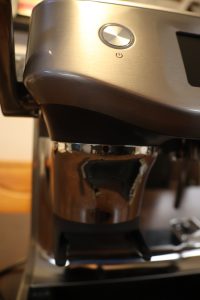 Die Zubereitung eines Espressos fiel im Test durchweg positiv aus. Nach der Extraktion bewertet die Maschine auf dem Display, ob diese zu schnell oder zu langsam war. Der Mahlgrad kann die Extraktionszeit beeinflussen. Dementsprechend verkürzte oder verlängerte sich die Zubereitungsdauer des Espressos. Fein gemahlene Bohnen benötigen eine längere Extraktionsdauer, was ein intensiveres Aroma zur Folge hat. Ist der Mahlgrad grob eingestellt, dauert die Extraktion lediglich 5 Sekunden, was zu einem faden schmeckenden, nahezu durchsichtigen Kaffee führt. Bei optimalem Mahlgrad liegt die Extraktionszeit zwischen 20 und 30 Sekunden, abhängig von der Zubereitung einer oder zweier Tassen. Das Wechseln des Siebaufsatzes erfordert einen gewissen Kraftaufwand, da der Aufsatz festsitzt.