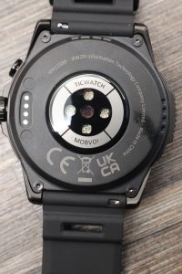 Dabei leistete sich die Smartwatch keine größeren Aussetzer. Das GPS-Signal wurde im Test nach etwa 15 Sekunden gefunden und die Genauigkeit der Strecke stand der eines gewöhnlichen Navigationssystems in nichts nach. Nur in Kurven ließ die exkate Positionsbestimmung etwas zu wünschen übrig. Wichtig: Sollte im Test per Google Maps navigiert werden, muss eine Verbindung zum Smartphone bestehen. Es war nicht möglich Offline-Karten auf die Smartwatch zu laden. An der Unterseite der Smartwatch befand sich ein Sensor, der bei der Lieferung mit einer Plastikfolie geschützt war. Diese PPG-Sensorik, wie sie genannt wird, maß im Test die Herzfrequenz und den Blutsauerstoff ohne Probleme. Sehr praktisch: Bei einem aktiven Sportmodus lieferte das FTSN-Display alle wichtigen Informationen zum laufenden Programm.