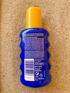 Im Praxistest konnte das NIVEA SUN Schutz & Pflege Sonnenspray mit einem Lichtschutzfaktor von 30 am meisten überzeugen und wurde Testsieger. Zuallererst fiel der Verzicht auf unerwünschte Zusatzstoffe wie Parabene und Mineralöl auf. Zudem beschreibt der Hersteller die Sonnencreme als frei von Mikroplastik. Der Flaschenkörper besteht zu 95 Prozent aus recyceltem Kunststoff und verspricht eine Feuchtigkeit, die bis zu 48 Stunden anhalten soll.