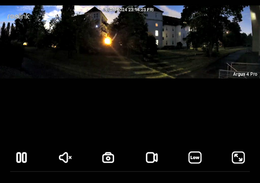Die Reolink Argus 4 Pro+ ist mit zwei Kameralinsen ausgestattet, die jeweils einen großen Bildsensor mit einem Zoll-Bildformat haben und eine Auflösung von 2.645 x 1.440 Pixeln erreichen. Jede Linse deckt eine Hälfte des Gesamtbildes ab und erzielt somit eine Gesamtauflösung von 5.120 x 1.440 Pixeln sowie ein stattliches Sichtfeld von 180 Grad. Damit kann die Argus 4 Pro+ trotz des Verzichts auf eine Schwenkfunktion große Gebiete abdecken. Nur die Reolink Duo 3 bietet einen ähnlichen Vorteil, liefert jedoch mit einer Gesamtauflösung von 7.680 x 2.660 Pixeln noch schärfere Aufnahmen. Wird das das große Sichtfeld berücksichtigt, entspricht die Auflösung der Argus 4 Pro+ lediglich 2K. Die Argus PT Ultra und die Duo 3 nehmen in 4K-Qualität auf und bieten somit eine etwas bessere Bildschärfe. Dies macht sich insbesondere bei weit entfernten Personen oder Objekten bemerkbar.