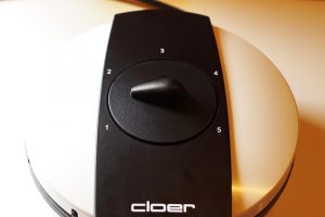 Vor der ersten Verwendung wurde das Waffeleisen auf die höchste Stufe eingestellt und 4 Minuten vorgeheizt. Anschließend erfolgte die Reinigung mit einem feuchten, weichen Lappen. Dabei sollte ausschließlich Wasser genutzt werden, denn Spülmittel könnte sich bei der nächsten Waffel geschmacklich bemerkbar machen. Eine Reinigung in der Spülmaschine ist nicht möglich. Dank der rutschfesten Füße steht das Gerät stabil auf der Arbeitsfläche, selbst bei geöffnetem Deckel. Der Griff bleibt kühl, während der Deckel nur leicht erwärmt wird. Der Cool-Touch-Griff bietet somit zusätzlichen Komfort. Eine manuelle Ein- und Ausschaltfunktion ist nicht notwendig, da das Gerät bei Anschluss automatisch in Betrieb genommen wird.