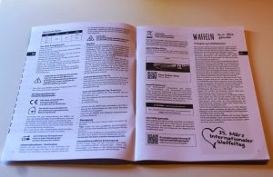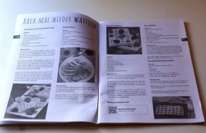Die Backflächen sind antihaftbeschichtet, wodurch sich Waffeln und Sandwiches mühelos entnehmen lassen. Zudem werden zwei Aufbewahrungsboxen für die Plattensets mitgeliefert. In diesen befinden sich Rezepte für die Zubereitung von Waffeln und Sandwiches. Das multifunktionale Gerät wurde im Test beim Backen mehrerer Waffeln unter die Lupe genommen. Da das Gerät über keine Backstufen verfügt, musste zunächst durch verschiedene Backversuche ermittelt werden, wie der persönlich bevorzugte Bräunungsgrad erzielt wird.